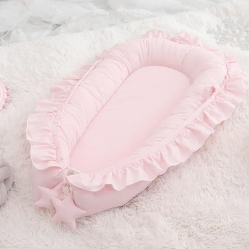 Baby Lounger, 95 cm/37,4 Andas Bomull Nest-Pod med volanger, Bärbar Sovskida för Barn, Justerbar Babypod, Babymadrass för 0–12 Månader