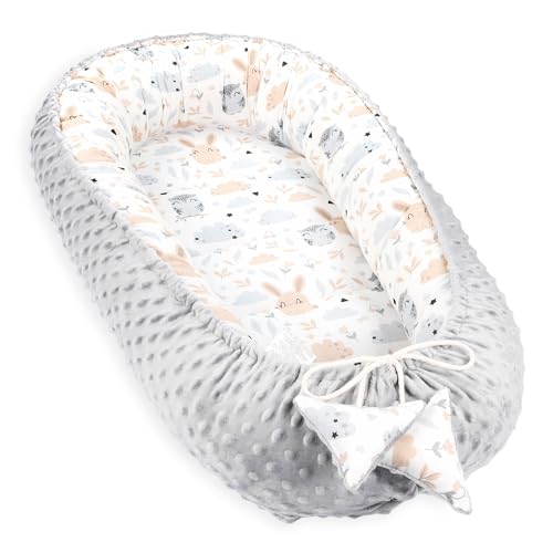 Nest för baby - babynest nyfödd Minky babynest för spjälsäng mångsidigt bärbart babynest kramvänligt tillbehör för spjälsäng varm vinterkokong Ugglagrå