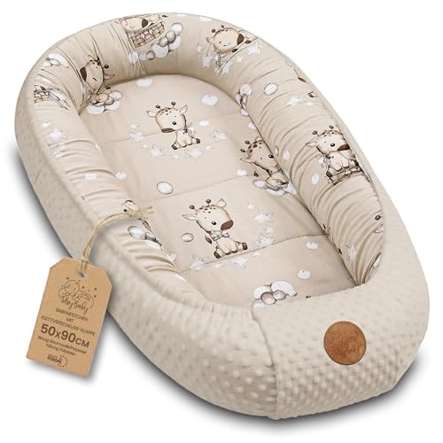 Nest för baby - babynest nyfödd Minky babynest för spjälsäng mångsidigt bärbart babynest kramvänligt tillbehör för spjälsäng varm vinterkokong Giraffer