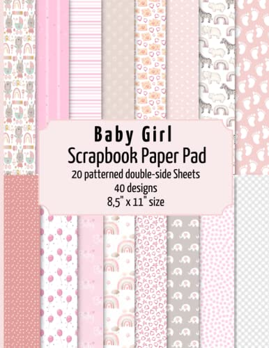 Baby Girl scrapbook paper pad: 20 patterned double sided sheets for scrapbooking, origami, paper arts, decoupage, DIY crafts. 8.5" x 11" paper book. 40 different designs.