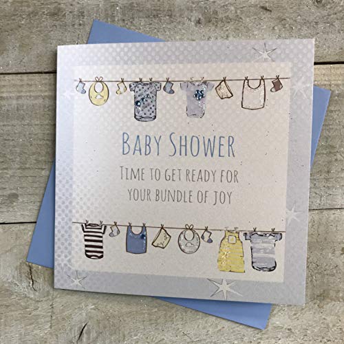 vita bomullskort duschtid för att göra dig redo för ditt paket med glädje baby tvättlinje, blå, G12b