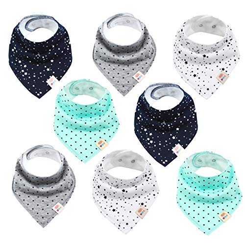 Baby triangulära halsdukar paket med 8 söta unisex bomull med justerbara vallmo rap tyg haklapp för småbarn pojkar och flickor (set unisex)