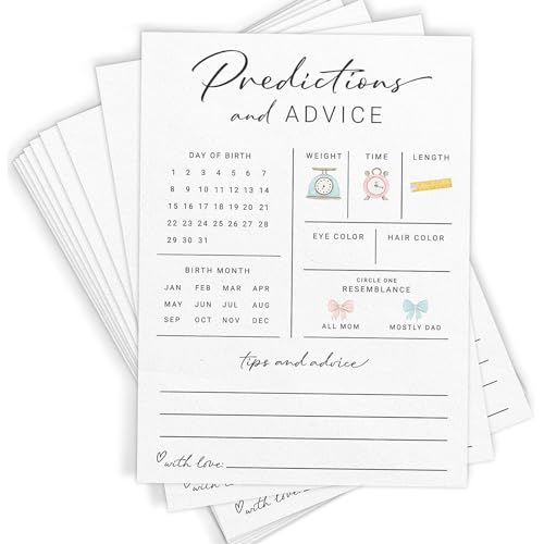 Wonninek Baby förutsägelse rådgivningskort paket med 30 baby shower kortspel unisex (178 x 127 mm) könsavslöjande pojke eller flicka modern minimal design