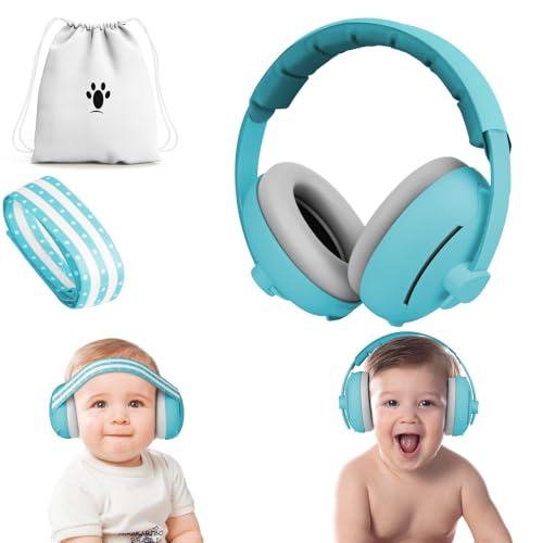 Aolso Baby öronförsvarare, 2-i-1 baby öronskydd för spädbarn och småbarn upp till 36 månader, brusreducerande öronmuffar, spädbarn brusreducerande hörlurar med mjuk kudde och justerbart pannband-blått