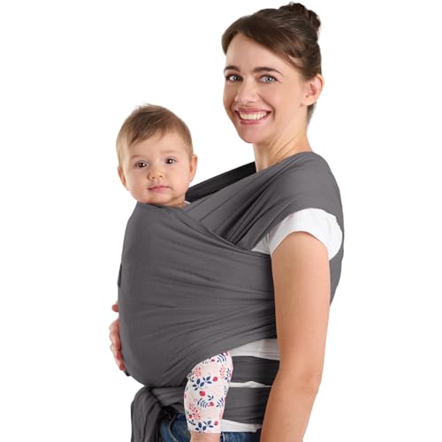 Laleni Baby Pannband för Bebis och Nyfödd, 100% Ekologisk Bomull, Mjuk och Stretchig Passform, Grå