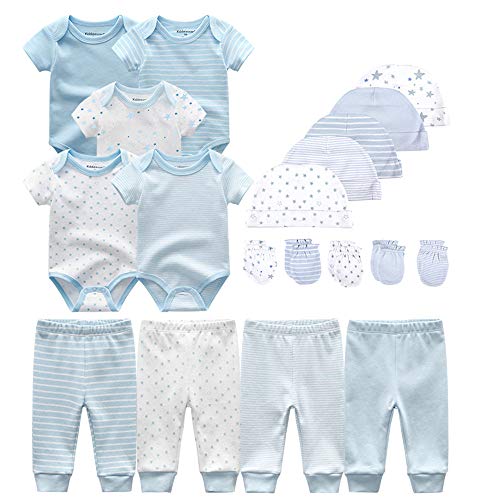 Kiddiezoom Baby-bodys, byxor för spädbarn, sparkdräkt, klädset, kläder för pojke, flicka, bomullsmössa, vantset mot rivmärken, 9-12 Månader