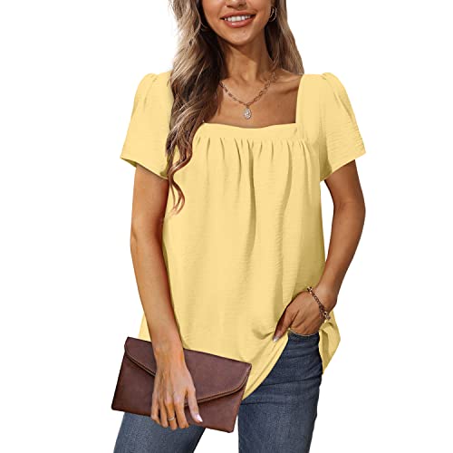 Aokosor Dam blus vardaglig fyrkantig hals skjortor lös puff damer tunika toppar, Baby gul, M