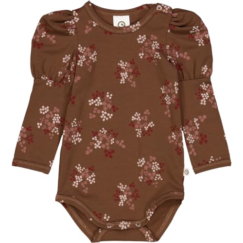 Müsli av grön bomull baby-flicka flora puff L/S kroppsbas lager, Bark/Cabernet/Nattingale, 80