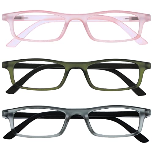 OPULIZE Ted Reading Glasses 2-pack Narrow matt lätt ram svart vår hängiven repbeständig män kvinnor, Matt baby rosa/matt khaki / matt grå svart, +1.00 Dioptren