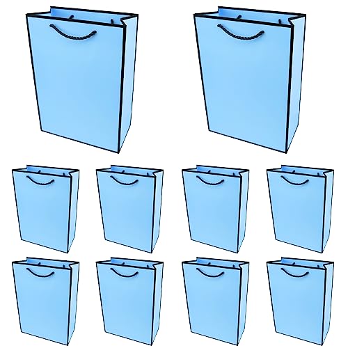 PACK4YA Papperspresentpåsar med band, presentpåse med handtag för födelsedag, bröllop, julfest, shopping, baby shower 20 x 10 x 28 cm (blå, svart ram, 10 stycken)