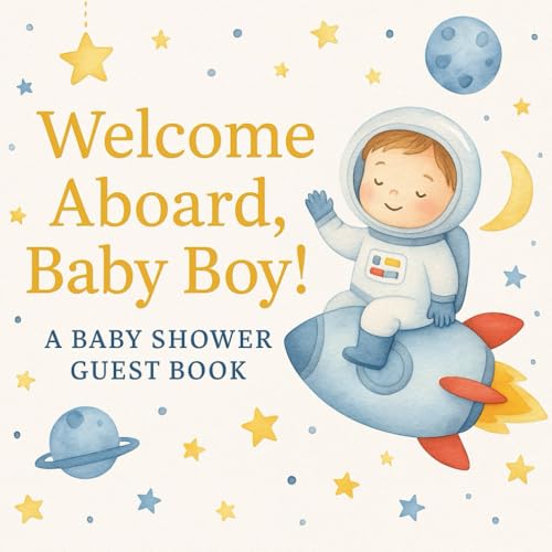 Welcome Aboard, Baby Boy! A Baby Shower Guest Book: Space-Themed Keepsake for Baby Shower Guests, Wishes, Predictions & Memories | Little Astronaut Design | 8.5 x 8.5 inches