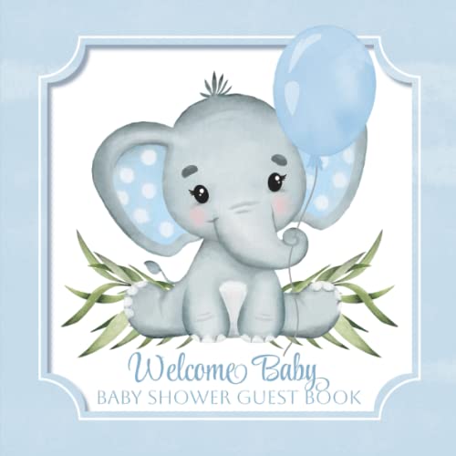 Welcome Baby, Baby Shower Guest Book: Elephant Boy, Sign-In Wishes, Advice And Baby Predictions, Includes Pages For Photos And Gift Log