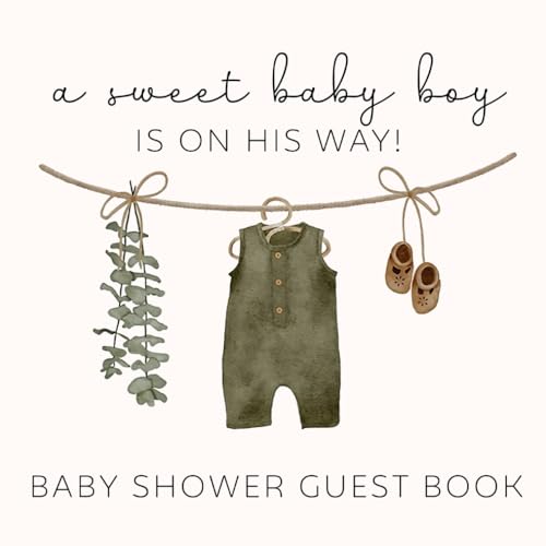 A Sweet Little Boy Is On His Way Guest Book: Sage Green Baby Shower Decorations