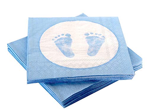 20 nappkins baby fötter footprint light blue kristening birth boy baby shower