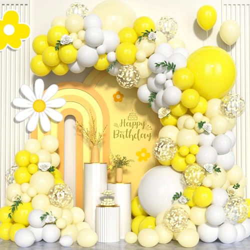 Gul ballongbåge-kit, 124 st gulvita ballonger girlang latex gul konfettiballong för flickor mammor födelsedag baby shower bröllopsdag examen picknick solros honungsbi fest dekor