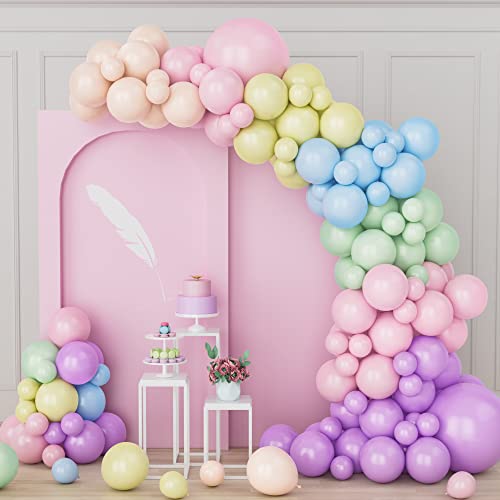 Macaron-pastellballongbåge, kit med regnbågs- och tusenskönaballonger, flerfärgade, födelsedagsdekoration för flickkalas, baby shower, regnbågsfest, könsavslöjande, bröllop