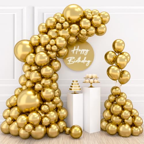 Guldballonger, 110 st guldballongbåge-kit, hållbara latex guld festballonger för grattis på födelsedagen, barnfest, bröllop, baby shower, jubileumsdekorationer tillbehör (guldballonger 45/12/10/5 tum)