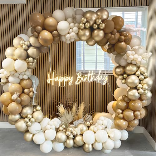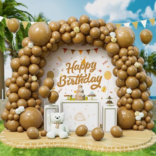 Brun ballongbåge kit- 167st ballongkrans kit med beige ballonger bruna ballonger metalliska guldballonger, festballongbåge för födelsedagsfest, baby shower, bröllop, förlovning
