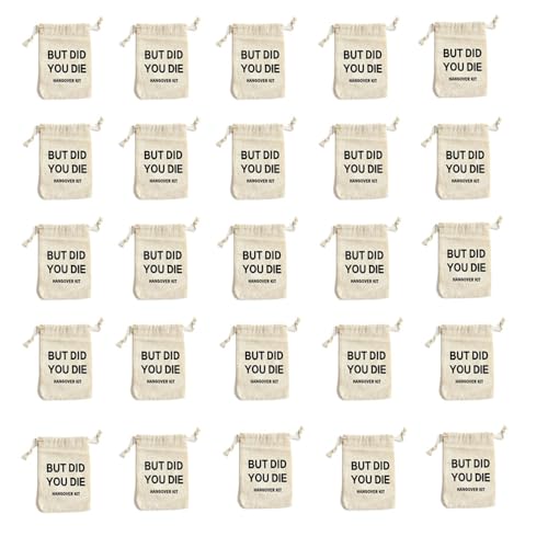25 st bomull baksmälla-kit väskor, roliga presentpåsar, baksmällarkit baby shower fest gynnsamma väskor små säckvävsväskor gör-det-själv