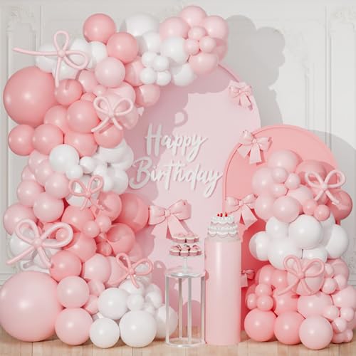Unisun Rosa vita ballonger båge kit, 147 st pastellrosa vita ballonger girlang med 45 cm rosa hjärta folieballonger för flickor kvinnor födelsedagsfest dekor bröllop jubileum baby shower förlovning