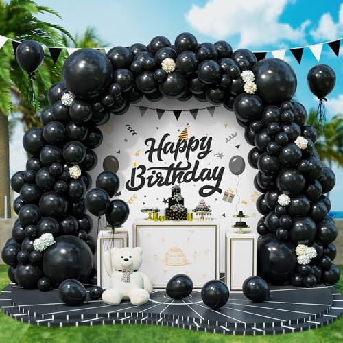 Svarta ballonger, kit med 143 stycken matt svarta bågballonger i olika storlekar för kvinnor, barn, födelsedagsfest, dop, bröllop, Halloween, nyår, karneval, pension, examen, baby shower