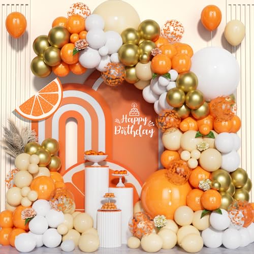 Orange ballonger båge girlang kit, orange beige vita metalliska guldballonger för födelsedag bröllop baby shower årsdag festdekorationer