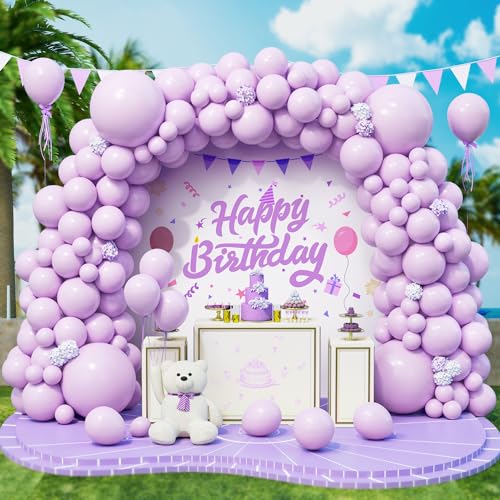 Pastelllila ballonger, kit med 143 stycken matt lavendel bågballonger i olika storlekar med band för tjejer, kvinnor, födelsedagsfest, bröllop, dop, baby shower, dekorationer