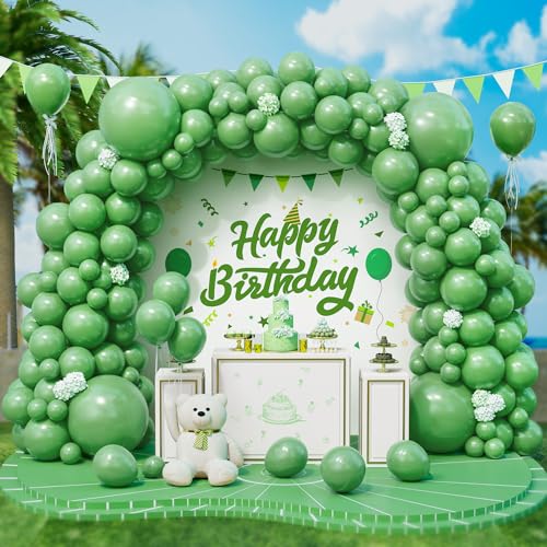 Salviagröna ballonger, kit med 143 stycken matt avokadogröna bågballonger i olika storlekar med band för tjejer, kvinnor, födelsedagsfest, bröllop, dop, baby shower, safari