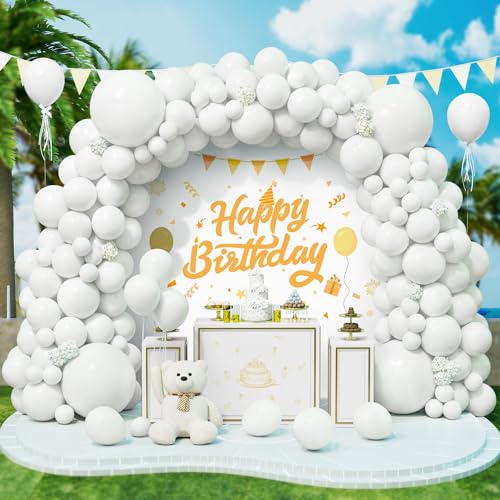 Vita ballonger, kit med 143 stycken matt vita bågballonger i olika storlekar för kvinnor, barn, födelsedagsfest, dop, bröllop, baby shower, förlovning, bröllop, årsdag, evenemang