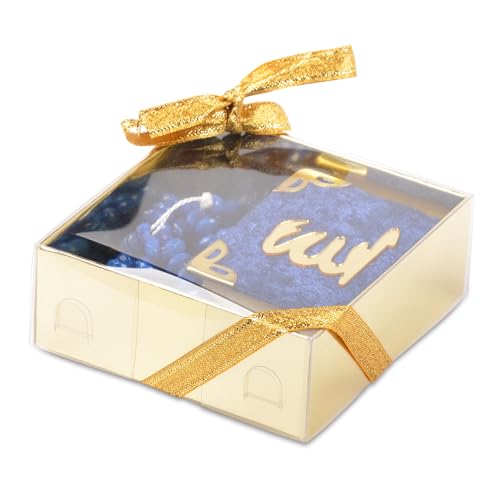 BABY SHOWER CHOCOLAT Uppsättning av 10 islamiska koranen Tasbeeh islamiskt set | heliga koranen bön pärlor presentförpackning gåva (mörkblå)