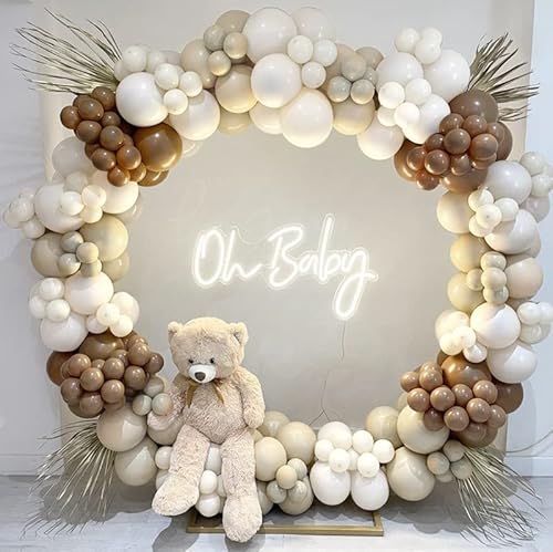 Sandvit Ballongbågsats - Brun Baby Shower Balloon Arch Kit, 182 St Naken Vita Ballonger för Neutral Dekoration, Födelsedag, Bröllop