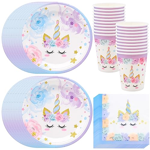 48 stycken enhörning party set, 16 gäster enhörning födelsedag dukning kit enhörning festtillbehör födelsedagsdekoration set för barn födelsedagsfest baby shower bröllop (enhörning)