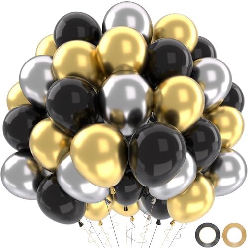 Svarta guldballonger Set, 52 Pack 12 tum svart guld metallisk silver latexballonger Kit för män pojke födelsedagsfest dekoration Graduering bröllop jubileum baby shower dop nyår