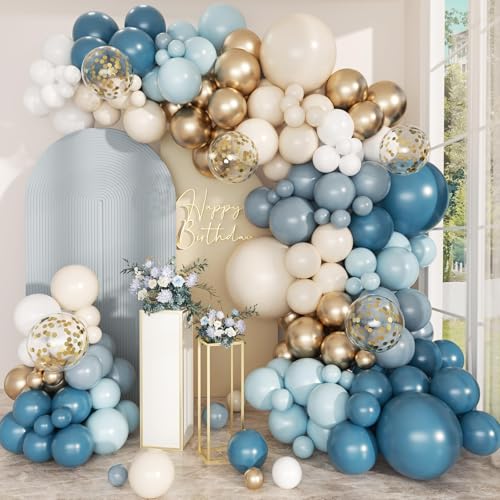 Marinblå guldballong båge-kit, 105 st marinblå ballong girlang kit med metallisk blå babyblå guldkonfettiballonger, blå festdekoration för pojke män födelsedag examen baby shower dop
