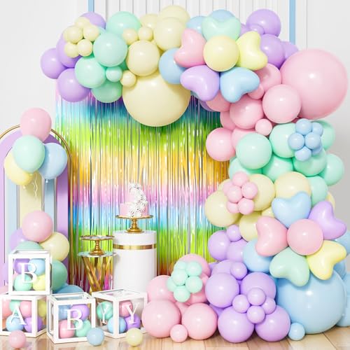 Kreatwow 244 st pastell ballong girlang kit regnbåge ballong båge macaron godis färgade latexballonger för bröllop förlovning födelsedagsfest baby shower dekorationer