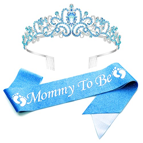 Mom To Be Baby Shower Decorations, Mom To Be Sash Tiara Mom To Be Crown Baby Shower Decorations Set för Pojkar och Flickor (Blå)