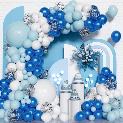 Blue Balloon Garland Arch Kit, 130st Macaron Blue White Latex Balloon Garland Arch Kit, Metalliska Blå Ballonger Med Konfetti Ballong För Pojke Girl Födelsedag Baby Shower Genus Reveal Dekorationer