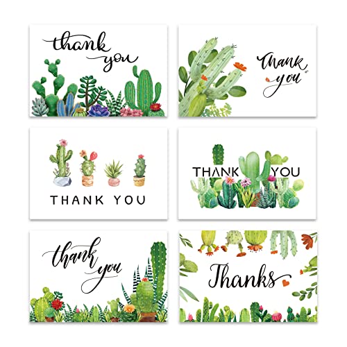 Kaktus tackkort 36-pack suckulenta tackkort med kuvert 10 × 15 cm vattenfärg blandade kaktus tackkort för bröllop, brudfest, baby shower, examen, hälsning
