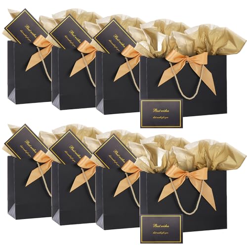 8-pack metalliskt papper presentpåsar med handtag, rosettband, näsduk och kort, 20 x 28 x 10 cm Tack-gåva väska för examen bröllop brud födelsedagsfest baby shower alla hjärtans dag pensionering