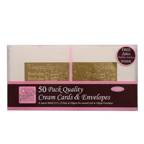 Anitas fyrkantiga vanliga, tomma kort och kuvert, 135 x 135 mm, kräm, paket med 50, för hem, bröllop, födelsedag, jul, tack, konst och hantverk, scrapbooking-tillbehör, baby shower, korttillverkning
