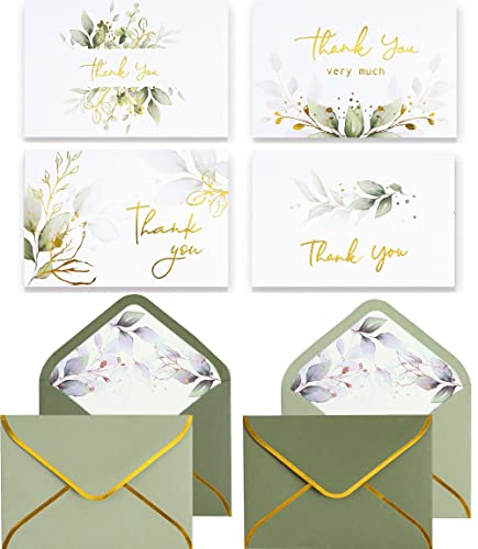 Winoo Design 100-pack lyxiga tackkort i guld med kuvert, bulk, salviagrön, 13 x 9 cm, kort för bröllop, tackkort, baby-shower, grönska, brud-dusch, småföretag