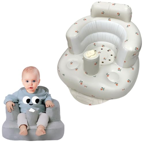 Uppblåsbar barnstol 4–24 månader med inbyggd luftpump, ryggstöd för barn, sittstol, baby shower-stol, säte (Tulpan + sofföverdrag)