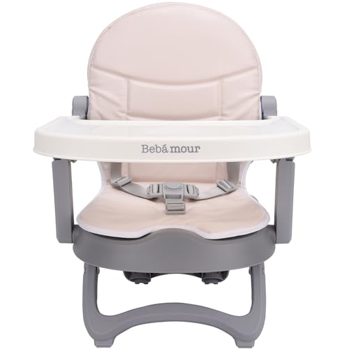 Bébamour babystol med pall med höghöjd sits Sit Me Up baby matsal stol bärbar, beige