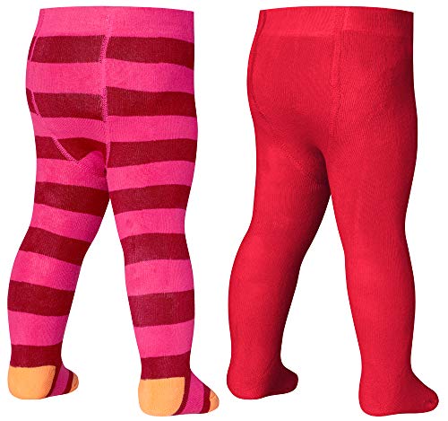 Playshoes Baby Frottee Thermo-strumpfhosen Block-Ringel tights (förpackning med 2), Röd (original 900), 50/56 cm