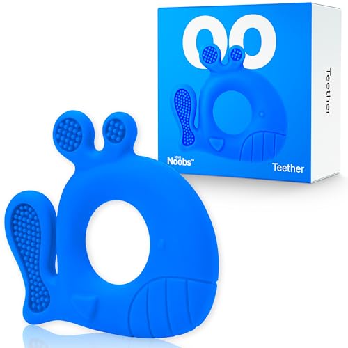 Baby Teething Toys by LoveNoobs, BPA Free 100% Food-Grade Silicone Teether, Safe Baby Chew Toy with Cotton Pouch, Blue