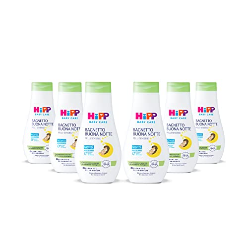HiPP - Baby Care Goodnight Badrum, babybad för barn, slappnar av och främjar vila, för känslig hud, med sandelextrakt, 6 flaskor på 350 ml