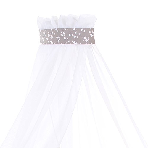 babybay Himmel ekologisk bomull med båge lämplig för modellerna Original, Maxi, Boxhopp, Comfort, Comfort Plus och Midi, ljusgrå stjärnor vit