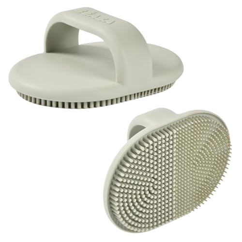 BÉABA, Silikon baby badborste, babytoalett, 2 sidor, tunn babyborste för massage, tjocka mjölkskorpor, 100% mjuk silikon, grågrön