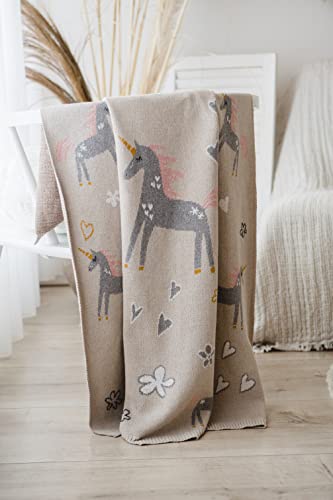 KAISER 65214 UNICORN – babyfilt stickad 100% ekologisk bomull (kbA), ventilerande babyfilt, året runt, nyfödda, barnvagnsfilt, babyfilt, färg. natural combo