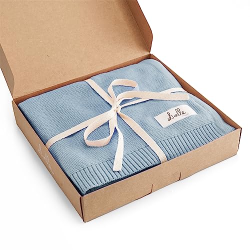 Livella Babyfilt av 100 % ekologisk bomull, premium stickad filt sammet mjuk och ventilerande, perfekt för känslig babyhud, Oeko-TEX Standard 100 och GOTS certifierad (ljusblå)